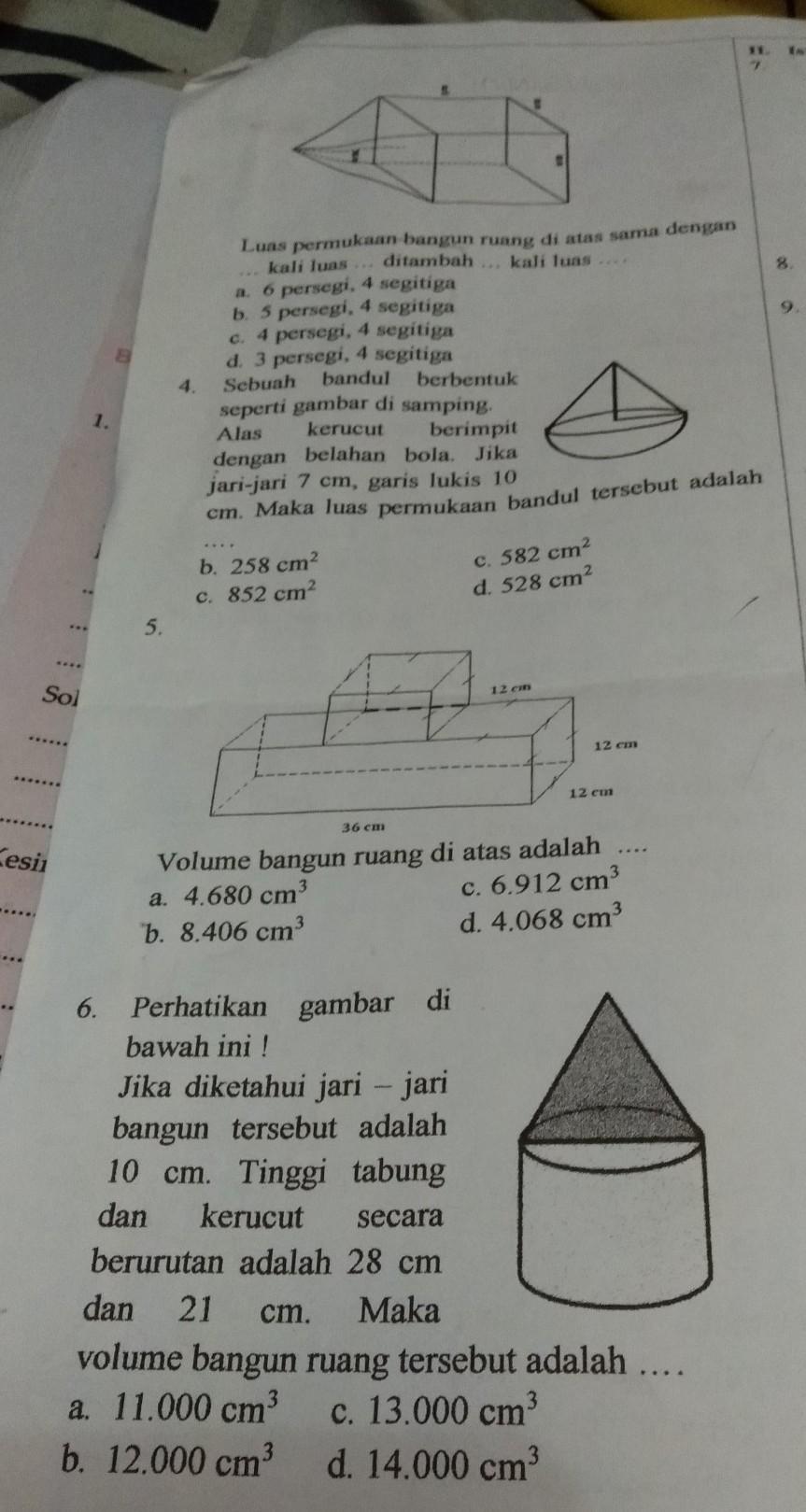 3.7 membuat generalisasi luas permukaan dan volume berbagai bangun ruang sisi lengkung (tabung, kerucut, dan bola).
